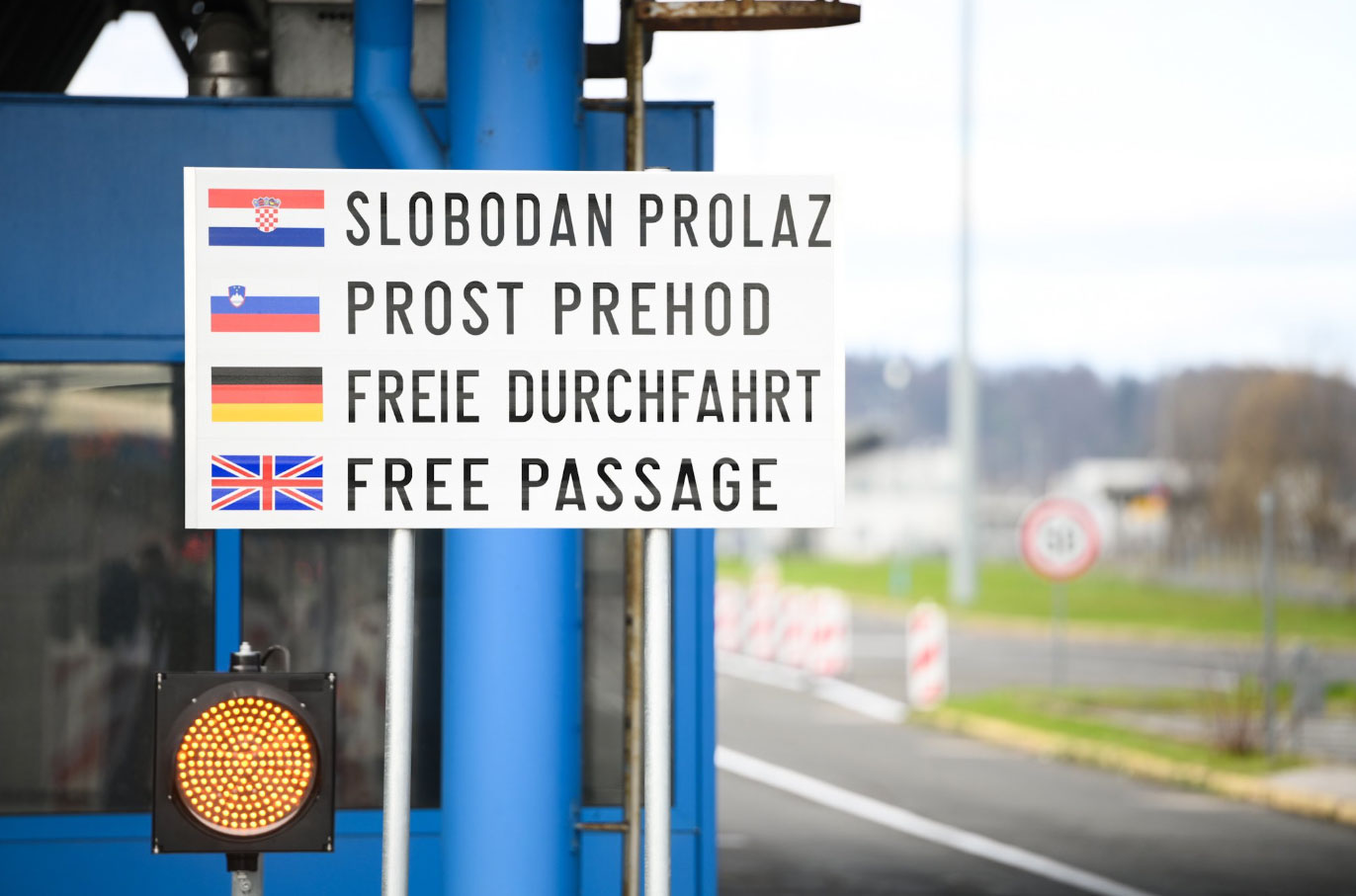 Στιγμιότυπο από την τελετή εισόδου της Κροατίας στη ζώνη Schengen, στο συνοριακό σταθμό Bregana, στα σύνορα Κροατίας – Σλοβενίας.